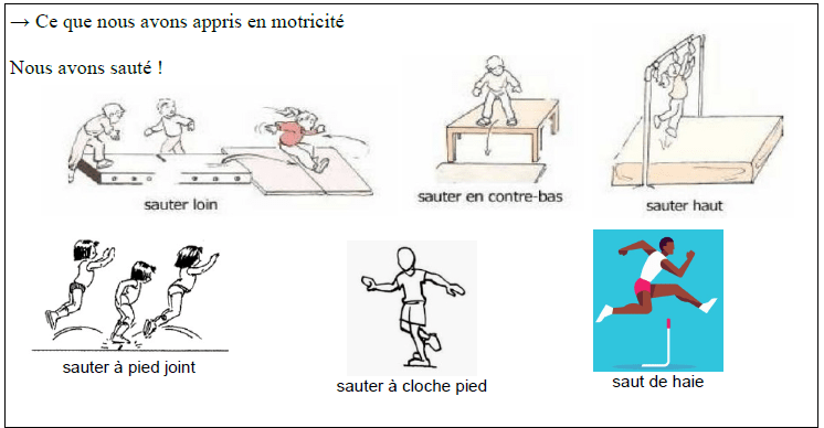 Adapter ses déplacements: Suivre un parcours sans toucher le sol (éléments de différentes tailles, hauteur, stabilité), ramper, enjamber, escalader, se hisser sur une table. Se déplacer dans différents environnements: parc, forêt, randonnée.